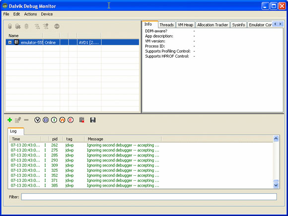 透视图。DDMS 的用途是跟踪和调试应用程序流,可用于模拟器和真实设备。