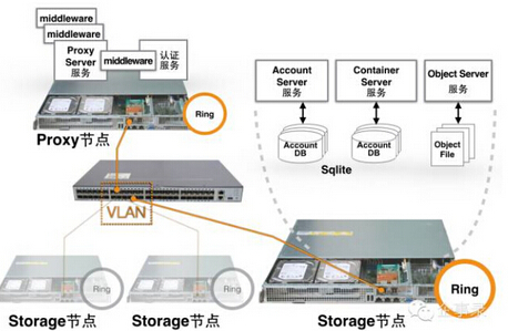 Storage节点上主要运行三类存储服务进程:Account Server、Container Server 和 Object Server,分别负责Account、Container、Object数据的存储,所以,在一些文献中又把存储节点称作ACO节点。
