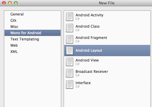 以上这些和 Android SDK 文档中介绍的都是大同小异的, 在 Mono for Android
