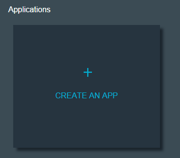 在 Bluemix 仪表板中,单击 CREATE AN APP 按钮。