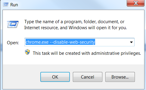 在 Windows 开始菜单中运行 chrome.exe --disable-web-security.