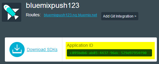 applicationRoute:创建应用程序时应用程序 URL 的值。例如,bluemixpush123.mybluemix.net
