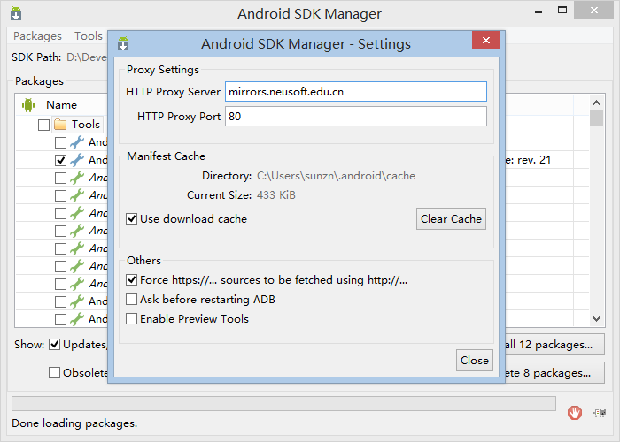 SDK关联起来。为了更加方便,在Andorid SDK下载中会包括SDK以及一个可以直接使用的Eclipse。