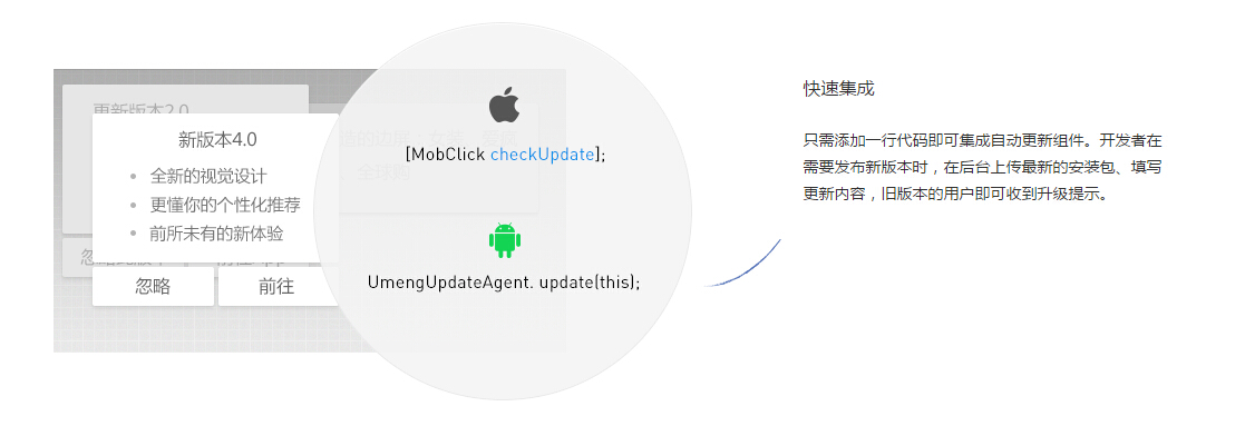 你可以自己写代码,也可以网上找代码抄一下,我之前的 敏捷个人APP 就是从网上下的一个代码片段放进我的项目中的。不过今天和大家说的不是如何编写自动更新代码,因为我们今天要做的是如何更快的用别人写好的东西来加速自己产品开发的进度和质量。