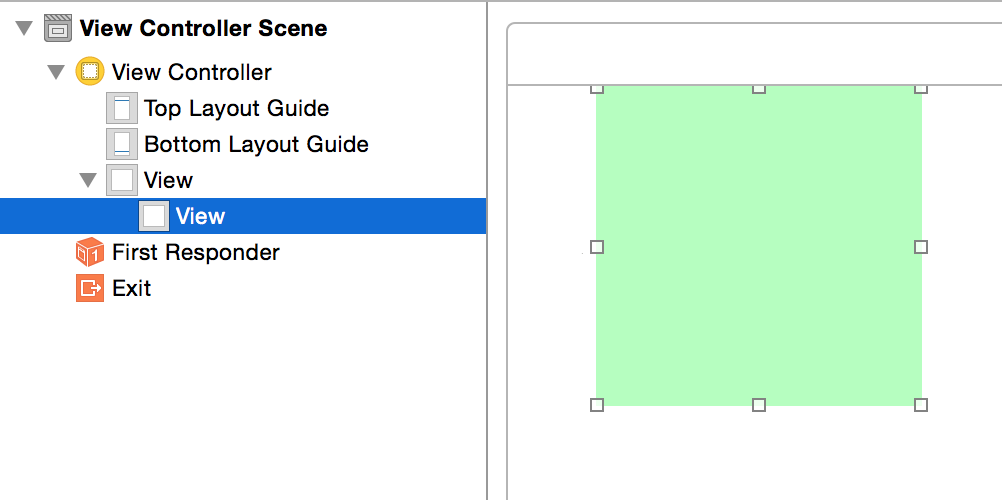 例子1、新建一个Single View Application template项目Demo1,拖拽一个newView到rootView上,并设置背景色为绿色,