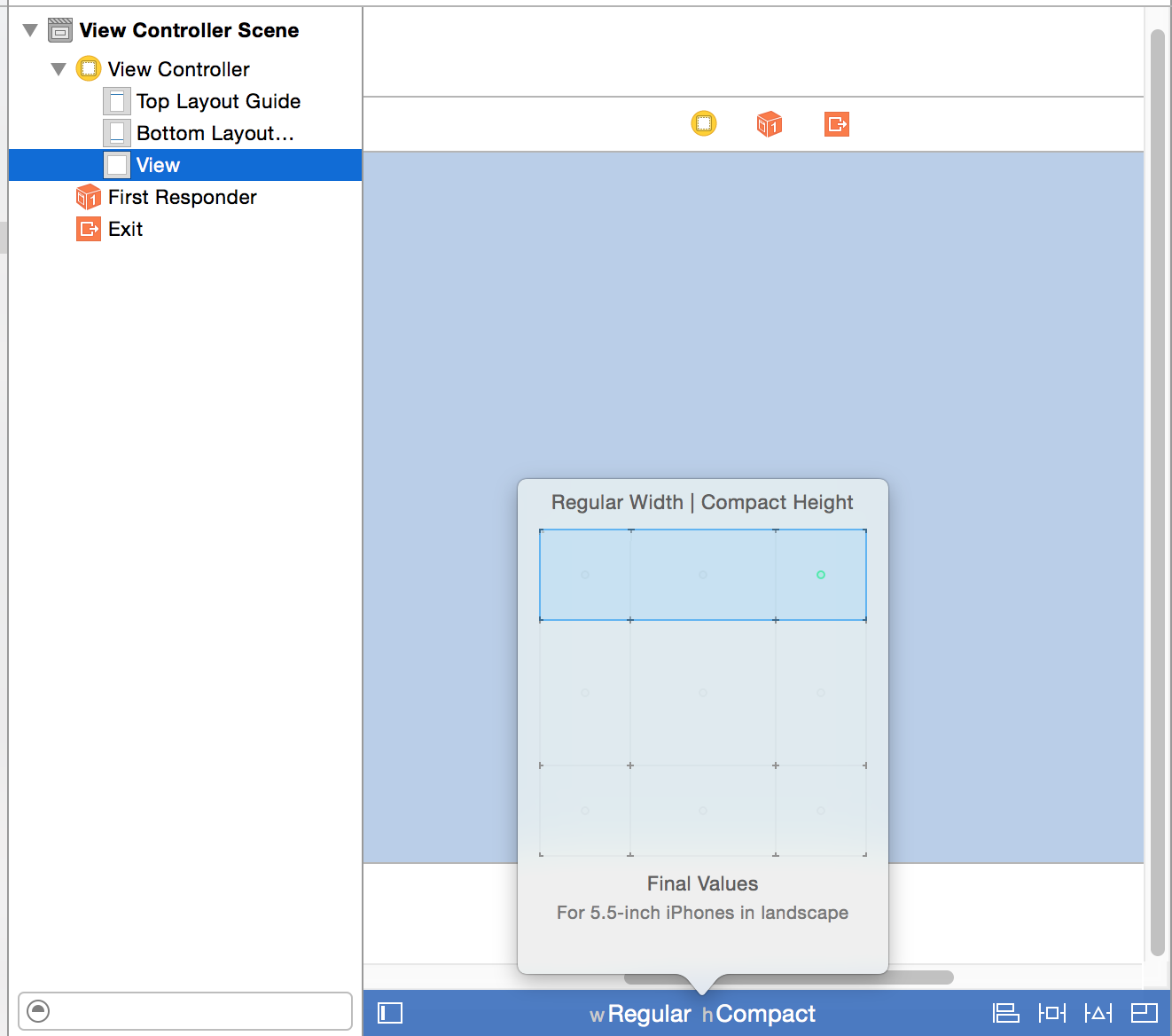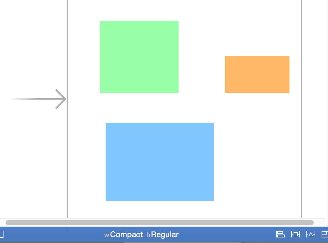 3、切换size class为wRegular/hCompact模式,然后重复第二步中的设置,区别是新添加的view背景颜色设置为绿色。