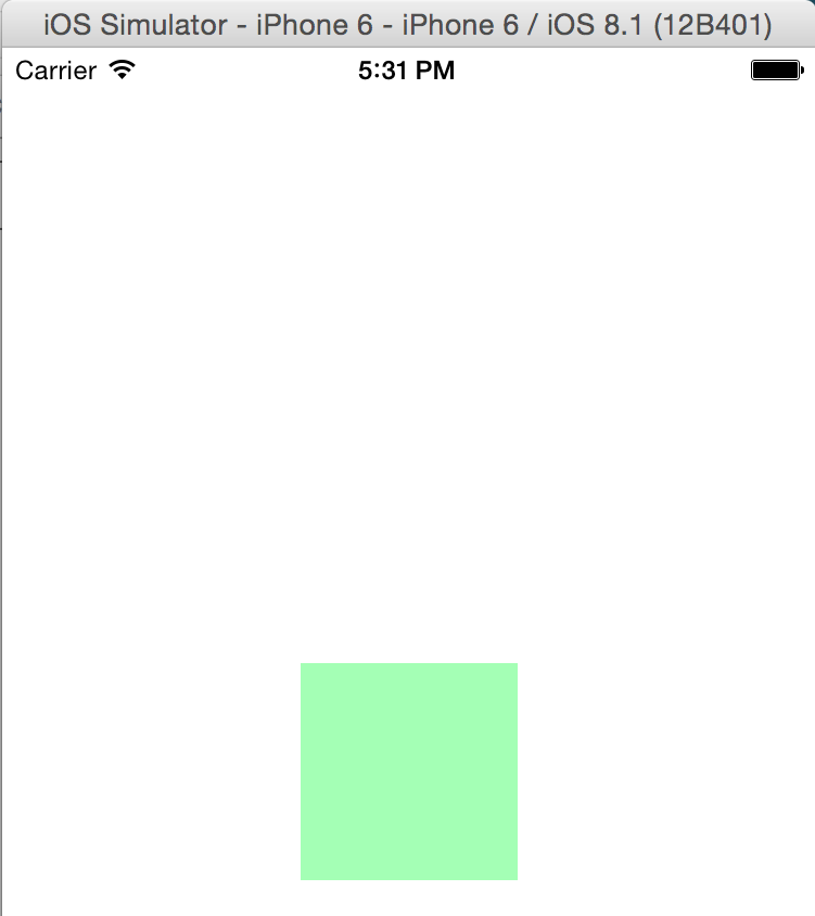 例子3、新建一个Single View Application template项目Demo3,添加一个view,是这个view的宽度和高度都是100点宽,并且始终居中于superview,效果如图: