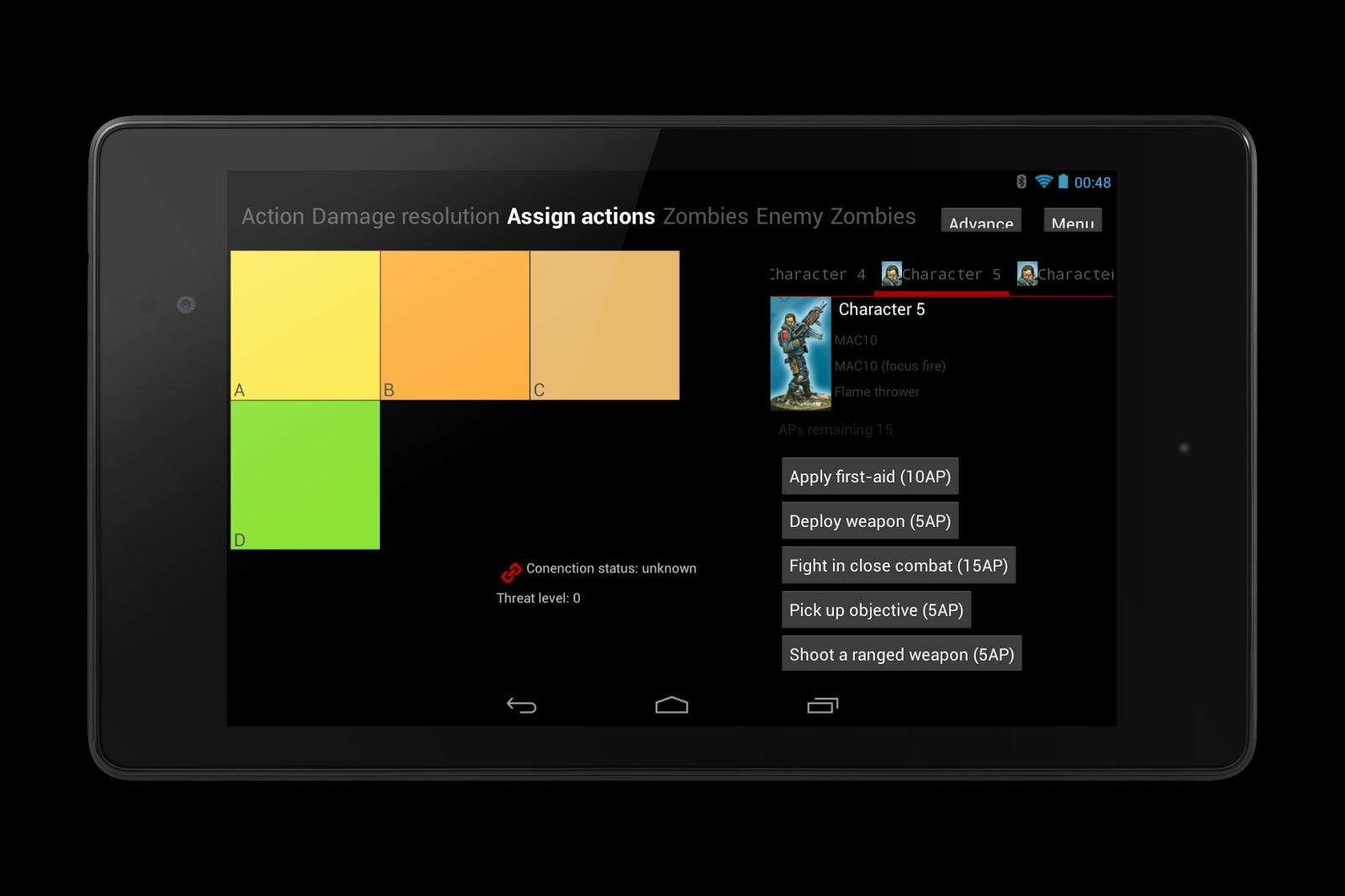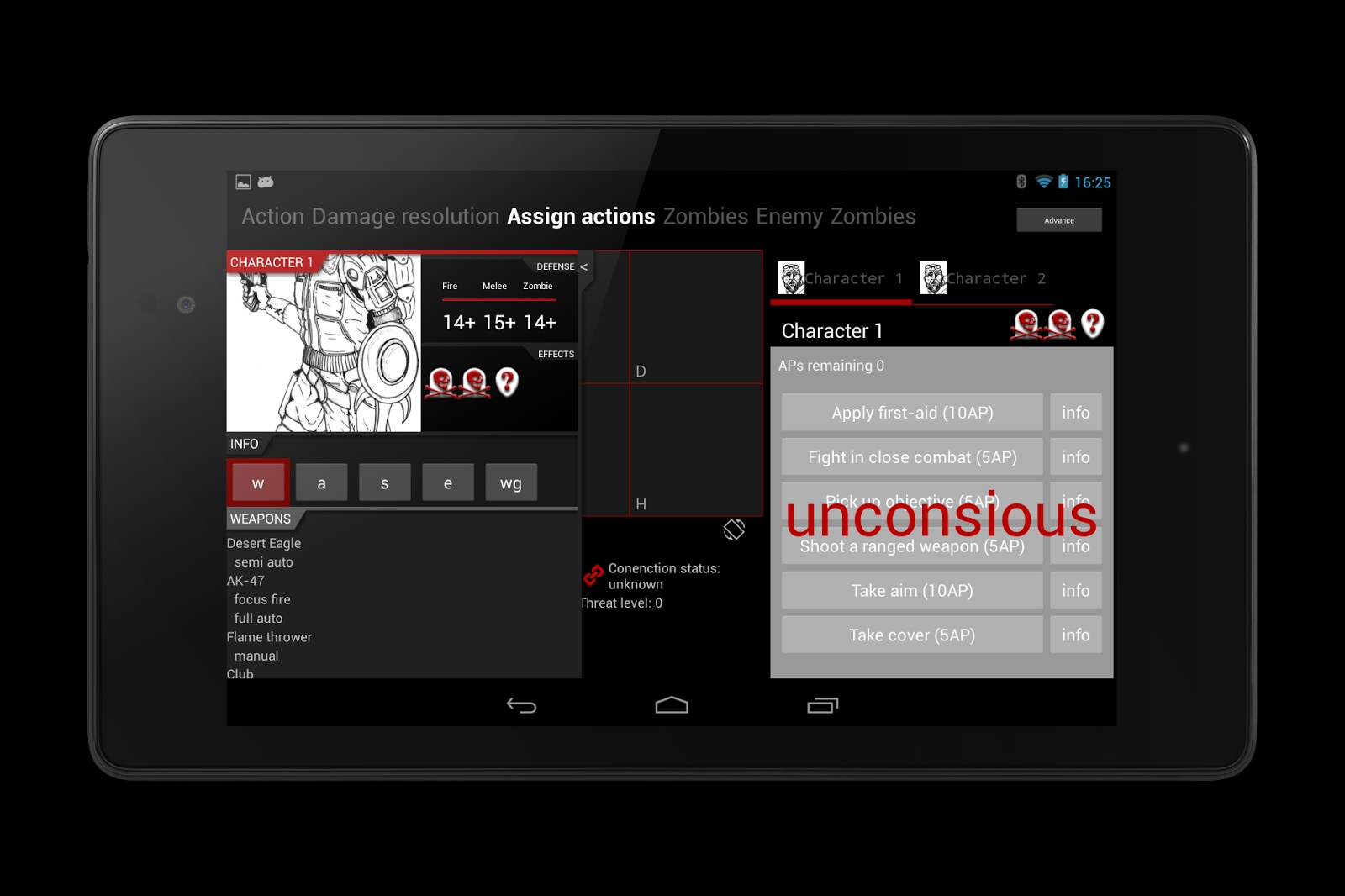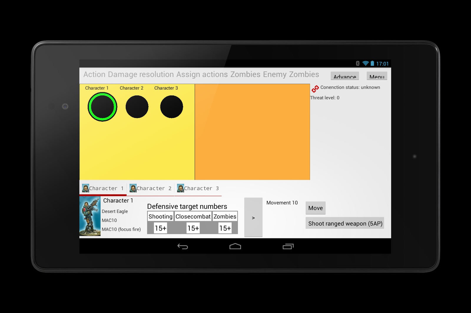 我花了大概两周的时间,在晚上编写代码。虽然UI几乎没有,不过核心已经出来了。游戏角色有了,动作可以执行,玩家还能用平板通过WiFi与其他人对话。
