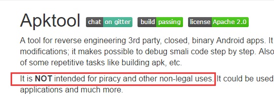 工具名: Apktool 官网: http://ibotpeaches.github.io/Apktool/ 源码: Github地址:https://github.com/iBotPeaches/Apktool