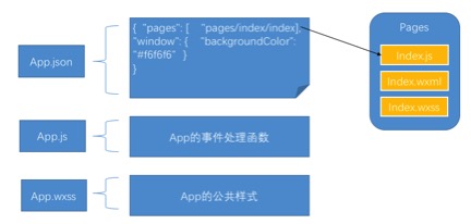 MINA,正式的资料里删除了这个名字,但为了后面行文方便,我会一直把小程序的应用框架称之为 MINA)构建。一个典型的小程序的结构如下: