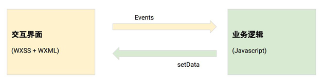Web 1.0 的模式,前端把交互行为封装成事件(event)发送到后端,后端处理完成后,通过 setData