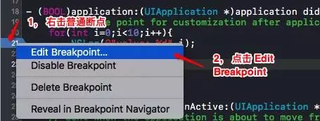 Action 在程序断点处执行的操作(执行完这个操作后代码停止运行,此时设置断点处的代码还没有执行)。这里的操作是LLDB语句,关于LLDB会在下面介绍。