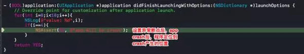 在设置异常断点的情况下 当程序crash时 Xcode会帮我们定位到crash产生的位置。