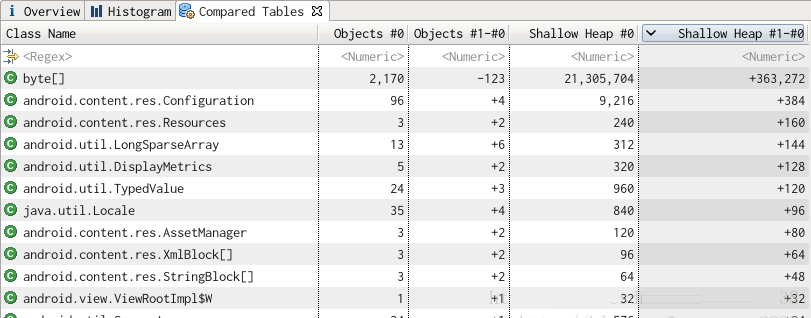 为查找内存泄漏,通常需要两个 Dump结果作对比,打开 Navigator
