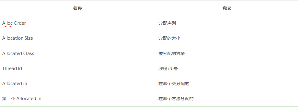 4.点击Get Allocations按钮,抓去内存分配轨迹信息,显示在右边的面板中,默认以内存大小排序,你可以以分配顺序排序或者仍以列排序。