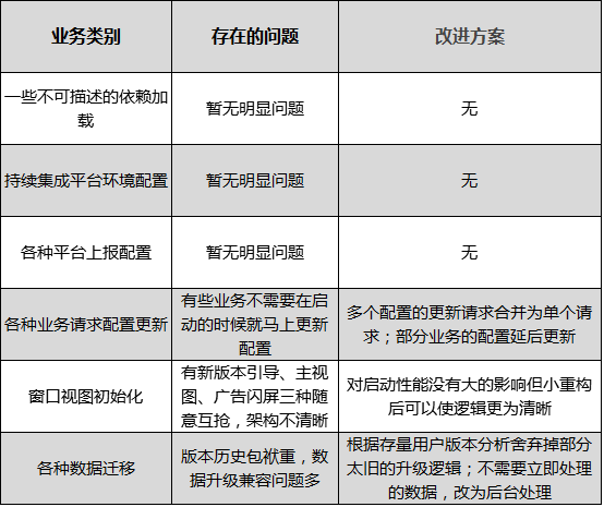 这里大部分都是一些苦逼活,但有一点特别值得分享的是,有一些优化,是无法在数据上体现的,但是视觉上却能给用户较大的提升。例如在【各种业务请求配置更新】的部分,经过分析优化后,启动过程并发的http请求数量从66条压缩到了23条,如此一来为启动成功后新闻资讯及其图片的加载留出了更多的带宽,从而保证了在第一时间完成新闻资讯的加载。实际测试表明,光做KPI的事情是不够的,人还是需要有点理想,经过优化,在视觉体验上进步非常明显。