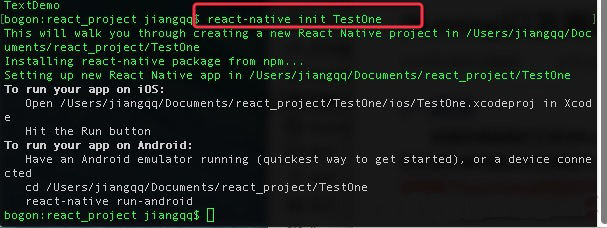 2.1.命令行运行:react-native init TestOne