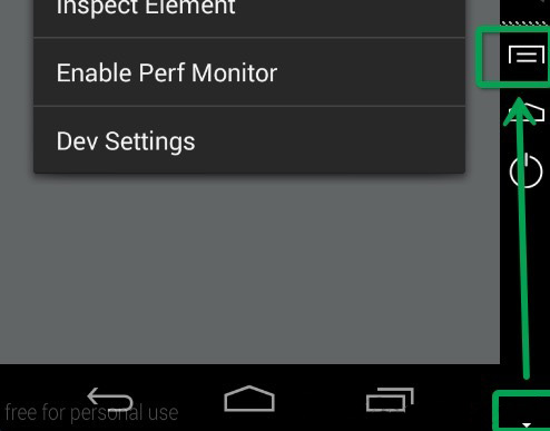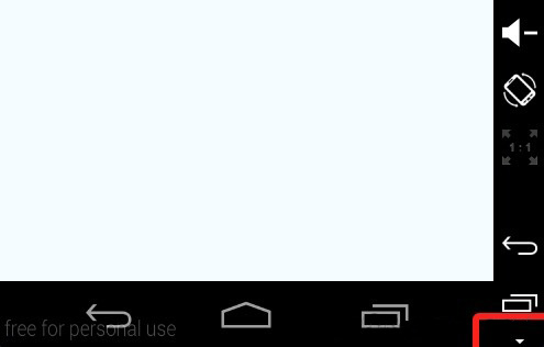 Android设备我们可以摇晃或者点击菜单键(不过现在很多手机已经没有这个模拟按键了)。如果你使用的是genymotion模拟器,你可以打开应用,然后发现屏幕右下方有一个箭头,点击然后点击菜单图标即可。截图如下: