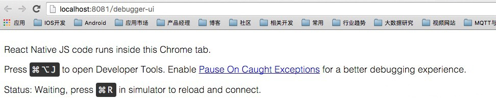 开发的应用进行调试的时候,我们可以使用Chrome来调试js代码,点击开发菜单中的Debugin Chrome。然后会打开一个网页:http://localhost:8081/debugger-ui 界面截图如下:
