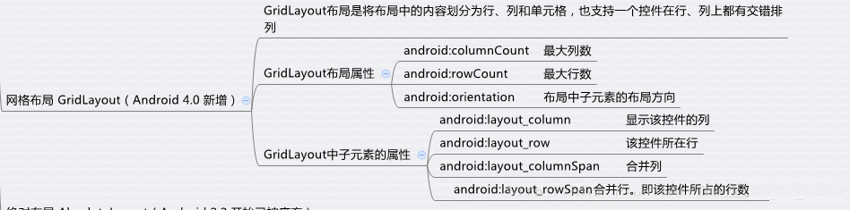 网格布局 4.0以后出的, 4.0以前的网格布局使用TableLayout