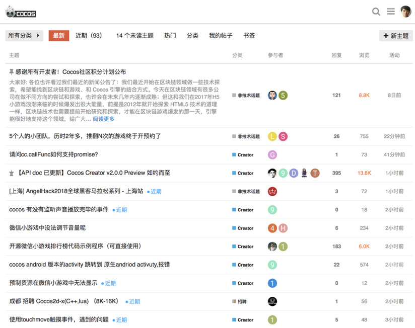 第四个甜头是 Cocos 提供的强大的社区支持。Cocos 的开发团队来自中国,有着非常活跃的中文社区。