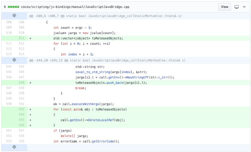 了解到这个原因后,我们给 Cocos 的引擎提交了一个 pull request,修复了这个问题。