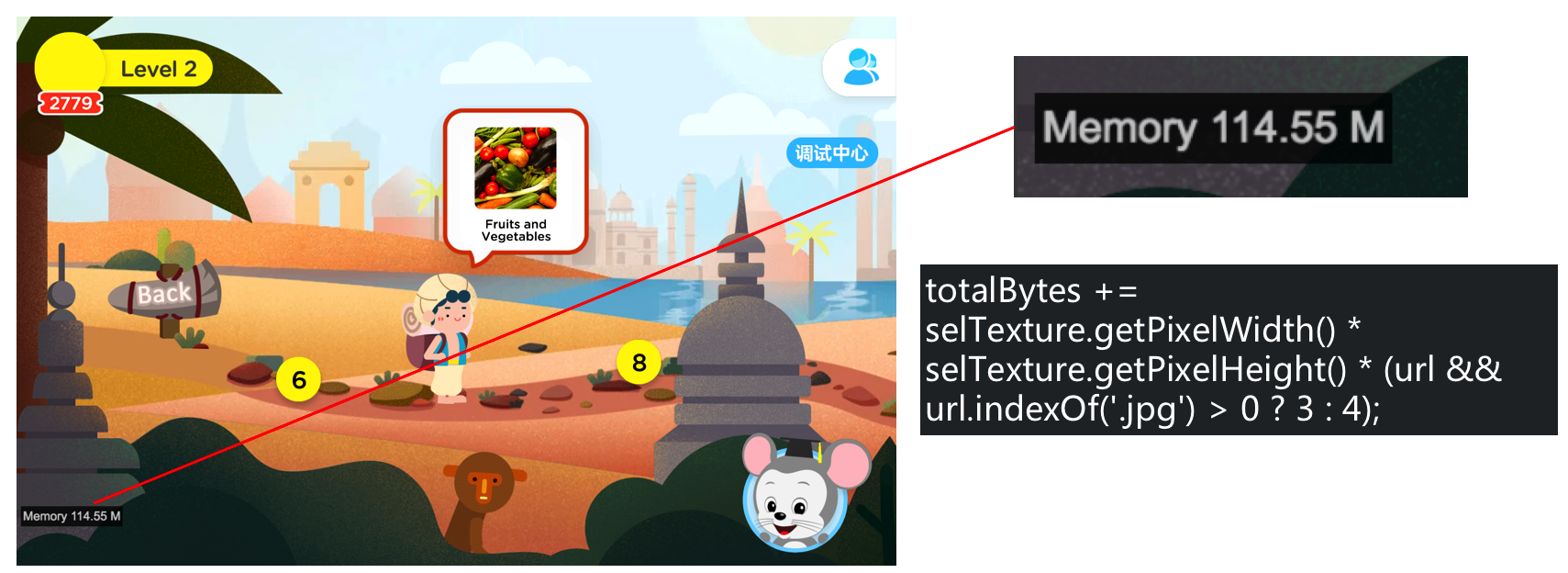 对于每一个场景,我们也对每个节点的内存占用做了一个排名,找出靠前的,分析是否合理,并进行针对性的优化。比如把原图缩小,把无需透明像素的png图转换成JPG图,等等。