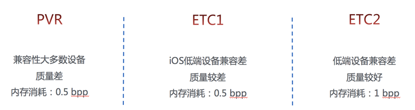 的低端机型,质量也较差。我们又对 Cocos2d-x 进行扩展,增加了 ETC2 纹理压缩,这种方案的优势比起