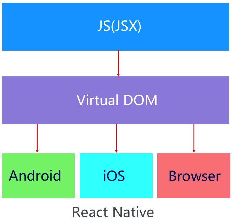 而 React Native 的渲染原理是将 JS/JSX 理解成 Virtual DOM,然后调用各自平台的