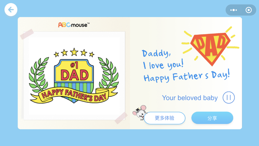 ABCmouse 制作的贺卡。值得一提的是,小游戏版本是我们两个开发在花了一周左右的时间内移植完成的。这里头主要的移植工作在于接入微信小游戏的登录授权,接入