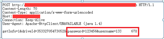 应用程序在登录过程中,使用http协议明文传输用户名和密码,并未对用户名和密码进行加密处理。通过监控网络数据就可以截获到用户名和用户密码数据,导致用户信息泄露,给用户带来安全风险。