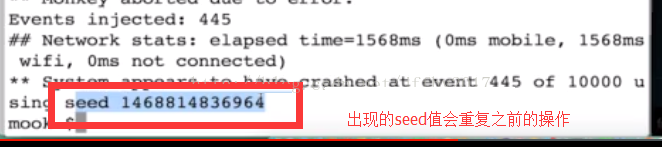 重现问题使用seed值:Adb shell monkey -p包名 -s 1468814836964