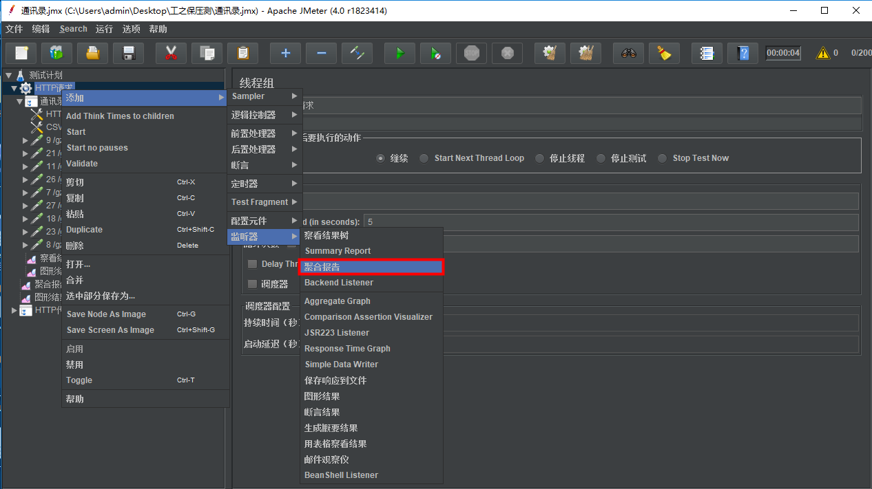 7.添加聚合报告:右键线程组→添加→监听器→聚合报告