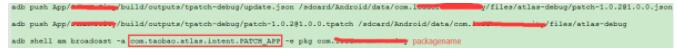 update中的广播(AwoPatchReceiver)做动态更新测试,打包patch步骤都一样,只是上传的目录有点不同。具体看命令