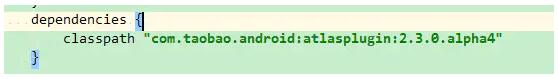 这里不需要在引入android插件,里面应该包含了当前能适配的版本。还需要注意的是atlas插件一直在更新,毕竟才放出来问题挺多,所以尽量用最新的。
