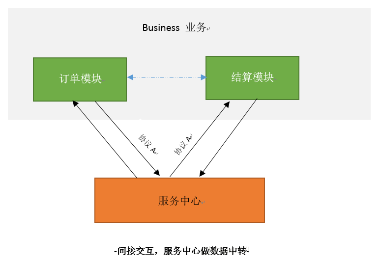 如果其他业务需要获取订单数据,首先订单业务需要注册订单服务到服务中心,其他业务才可以通过协议调用这个服务,其实说白了就是使用接口隔离(业务之间调用数据,通过统一的协议与服务中心交互,不调用业务实际代码),其实提倡的是面相接口编程,在软件开发中能否形成一个好的设计理念是相当重要的。