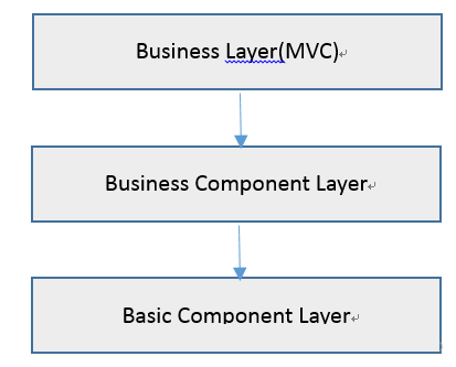 从项目的长远来看,我认为架构愿景应该是由基础组件层、业务组件层和业务层组成的三层架构。如下图: