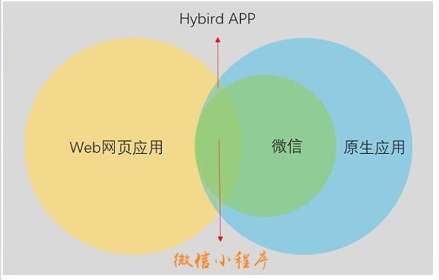native app(原生app)、web app、hybrid app(混合app),关系如下图: