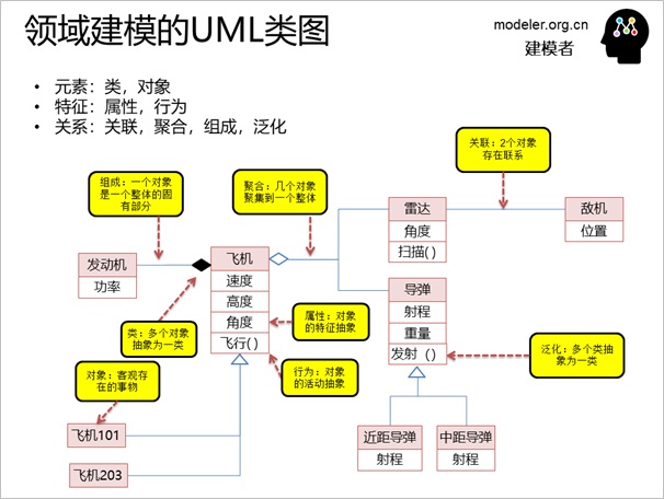 下面,让我们看看领域建模的类图都有哪些元素、特征和关系: