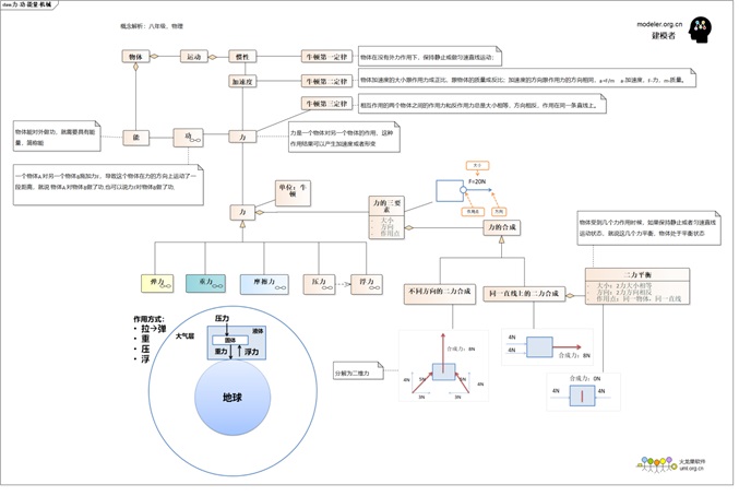 为了说明领域建模是一个基础能力,在此把为我女儿CC整理的八年级下物理的领域建模分享出来: