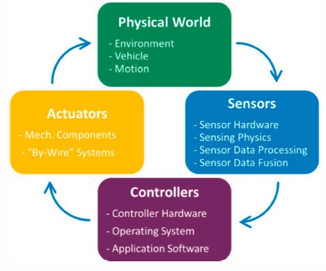 第三步:再传递传感器信号,以进行信号处理、传感器融合和实施控制算法。这些算法可决定是否通过加速或制动来改变汽车速度,以及是否通过转动方向盘来改变汽车方向。