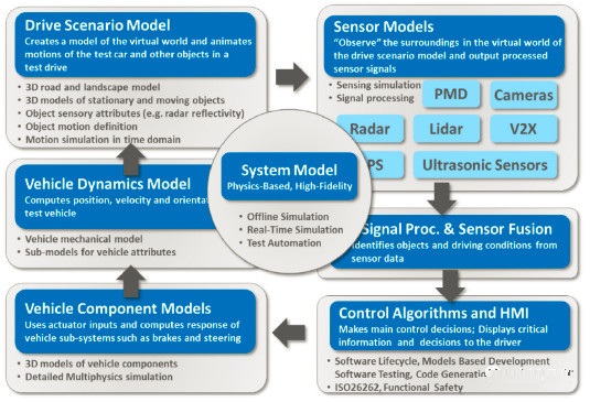 与硬件研发一样,仿真在软件研发中也发挥着至关重要的作用在研发和测试信号处理例行程序、传感器融合算法、物体识别功能、控制算法和人机界面(HMI)软件时,利用基于模型的软件研发技术可使软件更加稳健、安全、不易出错。由于ADAS和自动驾驶汽车系统本身就需要具备严格的安全性,汽车制造商和供应商越来越多地依照ISO 26262标准来设计汽革的主动和被动安全系统。因此ISO 26262标准在研发中也至关重要。基于模型的嵌入式软件研发技术以及经过ISO 26262认证的代码生成器能明显加快嵌入式软件的研发过程。一旦软件模型经过验证,就能确保所生成的代码不会出现错误,从而能够消除代码的单元测试工作,将软件研发的工作量减半。