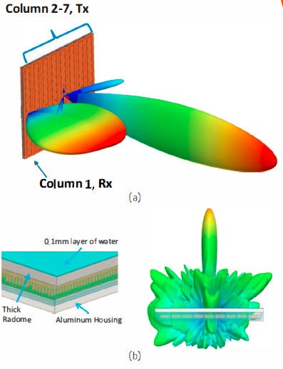 (a)隔离的雷达仿真:在自由空间中对雷达天编日天线罩进行的仿真。 在这类仿真中执行快速参数研究,以优化天糊口天线罩的 几何与材料设计。
