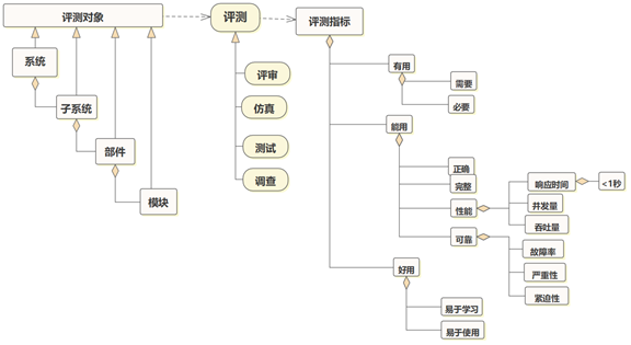 可以对一个评测对象进行评测,这个评测对象可以是基于Sys ML或者UML建立的评测对象模型,这样评测就更加准确。