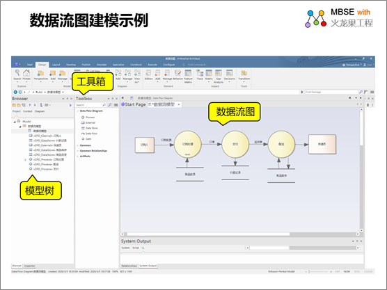 接着我们来看一下,一个完整的数据流图在EA中是如何显示的?