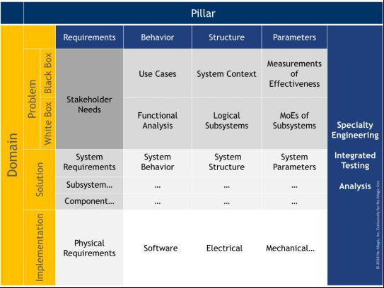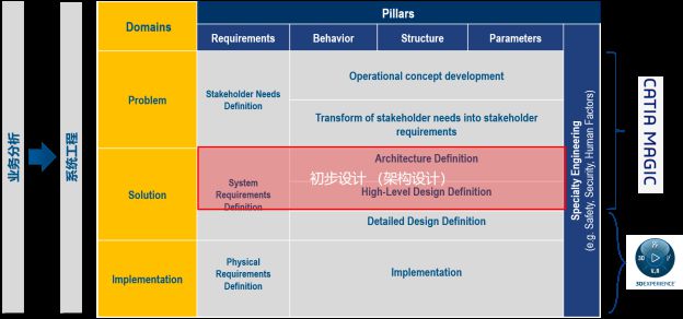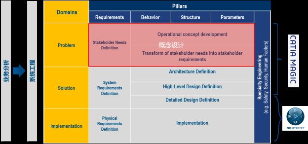 达索系统基于在航空航天领域的大量实践经验和应用场景,总结出MBSE成套解决方案-“九宫格”: