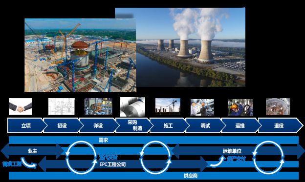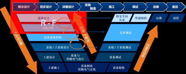 对标航空航天领域,核电新型号作为典型复杂系统在未来的发展趋势和任务变得十分明确,即正规化、标准化地应用MBSE从概念设计、初步设计、持续贯穿至详细设计、施工、调试、运维、退役的全生命周期各阶段,开发出符合核工业本身的需求(Requirement)、功能(Function)和逻辑(Logical)等系统模型,助力设计端的前期连续仿真与验证,并继承至下游用于物理设计(Physical)、施工仿真、虚拟调试、预防性检修等,保障系统全生命周期的可追溯性,同时进化式地迭代复用。