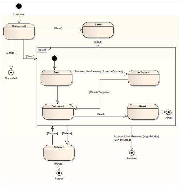 这是一个复合状态图,其中“Saved”状态含有子图,双击“Saved”可显示其子图。