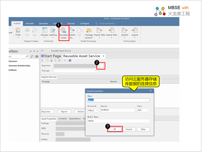 可重用资产服务是通过与相应服务器的云连接来访问注册表上的模型或文档,所以在访问资产中存储的数据首先要通过云连接的方式访问到服务器上的存储库。