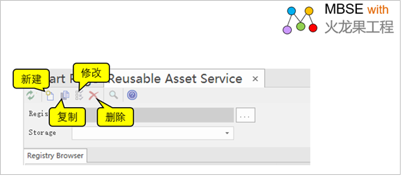 PCS 存储库连接之后即可在可重用资产服务窗口的左上角选择新建、修改、删除等按钮进行资产存储的相关操作。